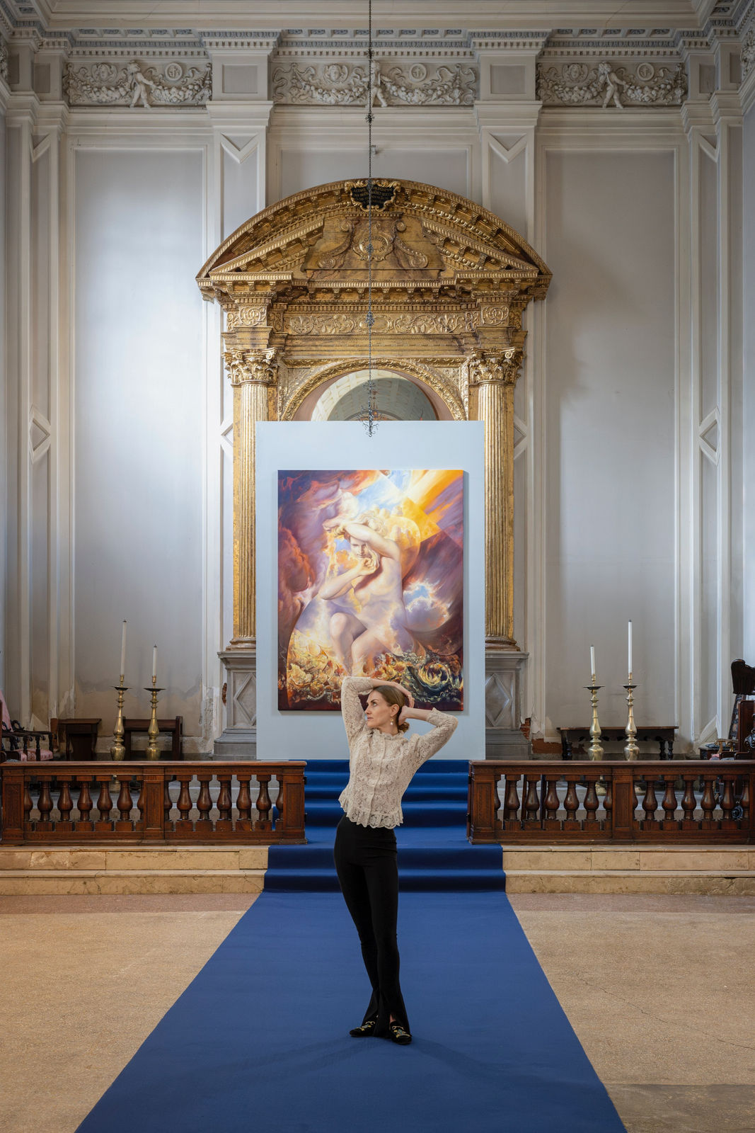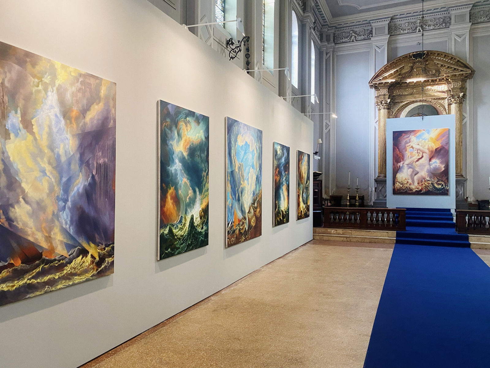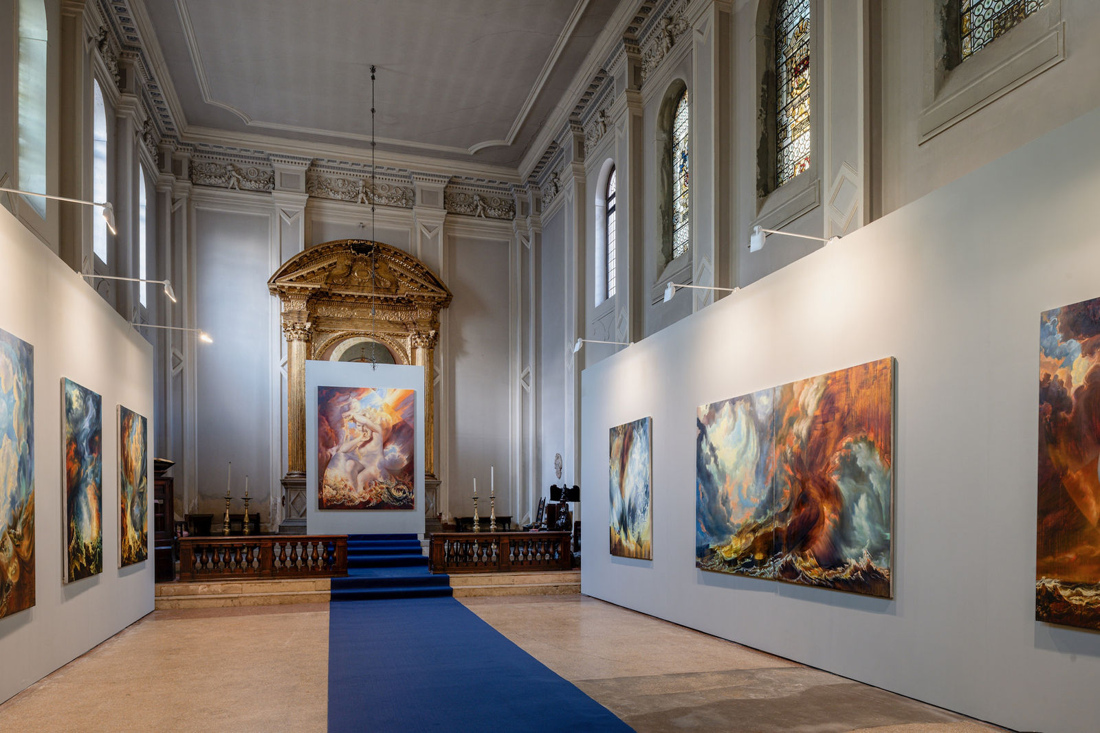 The Ministry of Nomads Art Foundation, in collaboration with Maria Vega and MON Art Foundation, is thrilled to unveil "CHRONOS," an extraordinary solo exhibition by Maria Kreyn, as a collateral event of the 60th International Art Exhibition at the Venice Biennale. Hosted within the historic St. George’s Anglican Church, "CHRONOS" presents a collection of ten monumental new oil paintings, launching on April 15th and running until June 22, 2024. We invite you to join us for the opening reception on April 16th, from 5 to 11 pm, to embark on a journey through the fabric of time and space.